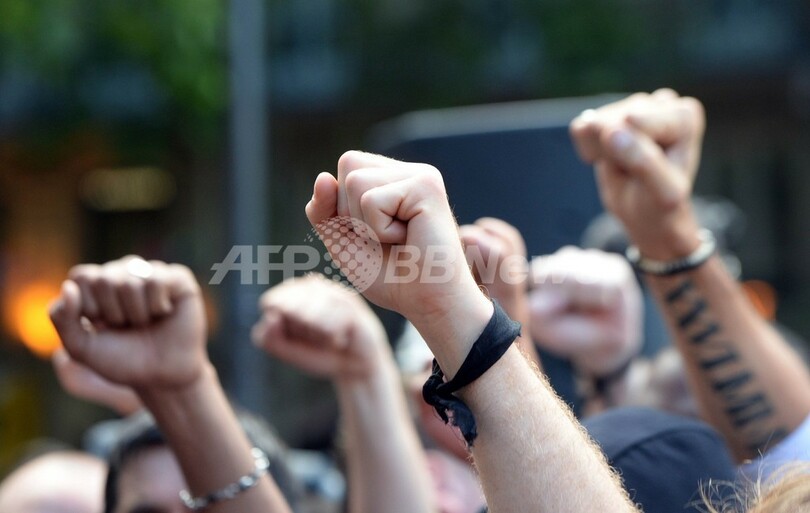 政治家らも党派を超えて事件を批判しており、過激化を強めるグループについては違法とするよう求める声も出ている。フランスでは最近、同性婚合法化をめぐる抗議デモで極右グループによる暴力的な衝突が複数発生していた。(c)AFP/Marianne Barriaux