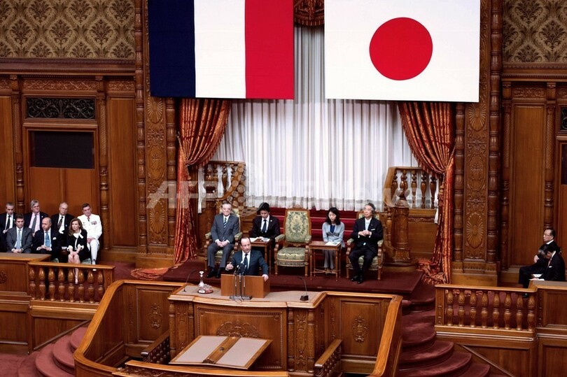 【6月7日 AFP】来日中のフランソワ・オランド(Francois Hollande)仏大統領が7日、東京での記者会見中に日本を中国と言い間違える場面があった。