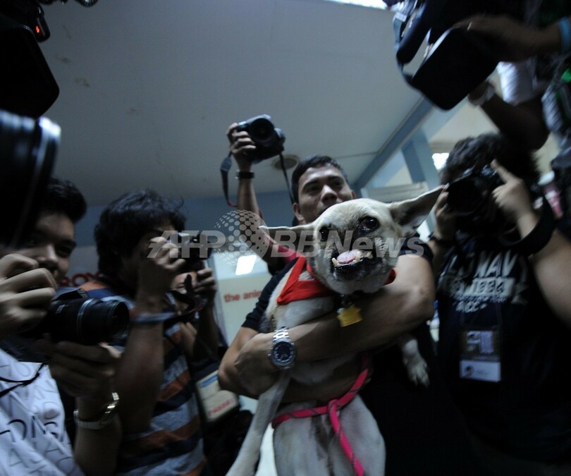 【6月8日 AFP】フィリピンで、道路を横断していた飼い主の娘とそのいとこを助けようとしてオートバイにはねられ、顔面の一部を失う大けがをした雌の雑種犬「カバン(Kabang)」が8日、米国での8か月にわたる治療を終えて帰国した。