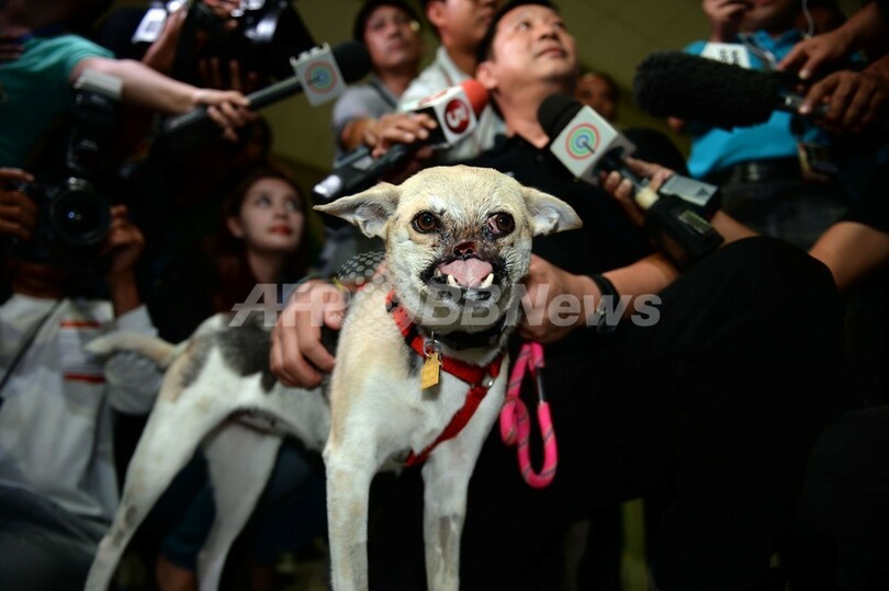 【6月8日 AFP】フィリピンで、道路を横断していた飼い主の娘とそのいとこを助けようとしてオートバイにはねられ、顔面の一部を失う大けがをした雌の雑種犬「カバン(Kabang)」が8日、米国での8か月にわたる治療を終えて帰国した。