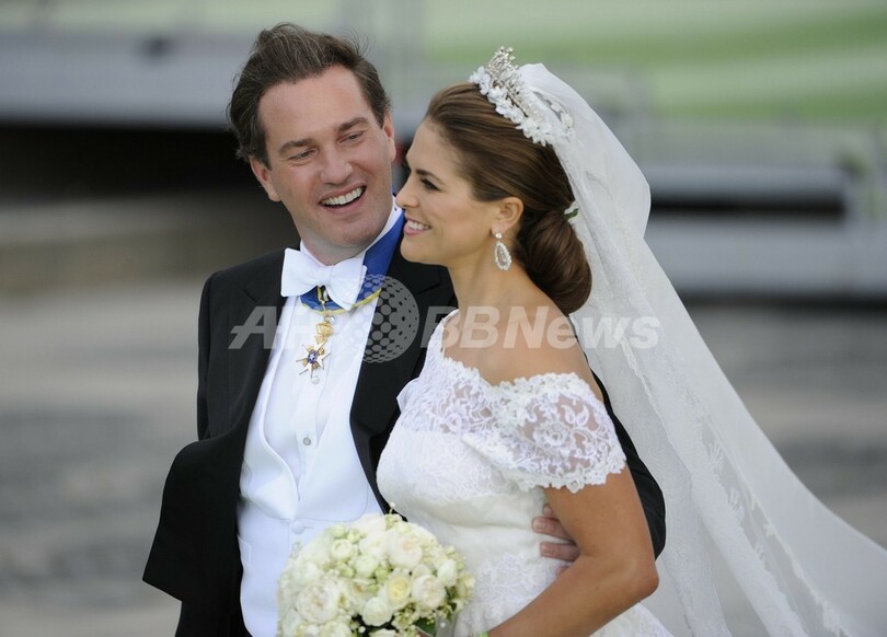 【6月9日 AFP】スウェーデンのカール16世グスタフ国王(King Carl XVI Gustaf) 夫妻の末娘、マデレーン王女(Princess Madeleine、30)と米ニューヨーク(New York)在住の実業家、クリス・オニール(Chris O'Neill)氏(38)の結婚式が8日、首都ストックホルム(Stockholm)の王宮で行われた。  首都の中心地を回るパレードのために馬車に乗り込む際、王女夫妻は3度キスを交わし、国旗を手に王宮周辺に集まった多くの人たちの間からは大きな歓声が上がった。  スウェーデン語と英語で行われた結婚式には、モナコ公国のシャルレーヌ公妃(Princess Charlene)や日本の高円宮妃久子さま(Princess Takamado)、英国のウェセックス伯爵エドワード王子(Prince Edward, Earl of Wessex)なども参列した。  王宮の礼拝堂で行われた結婚式では、賛美歌が流れる中でバージンロードを歩く王女の姿を見て新郎のオニール氏が涙をこらえる場面もあった。式ではスウェーデン出身のデュオ、ロクセット(Roxette)のボーカル、マリー・フレデリクソン(Marie Fredriksson)さんもヒット曲のバラードを披露した。  今月10日に31歳になるマデレーン王女は、シルビア王妃(Queen Silvia)が1999年に設立した慈善団体World Childhood Foundation(世界子供基金)の活動のために滞在していた米国で、ニューヨークのヘッジファンド、ノスターキャピタル(Noster Capital)で働くオニール氏に出会った。2人の婚約は昨年10月に発表されていた。  米英の2つの国籍を持つオニール氏はスウェーデン王族の称号を持たない意向。王族の称号を得るとスウェーデン国籍の取得が義務づけられる上、ノスターキャピタルのパートナー兼リサーチ部門主任という現在の職から離れなくてはならないためだという。  オニール氏は昨年11月には、カメラマンに向かってみだらなポーズを取ったとして、王位継承順位第4位の王女の夫にふさわしくないのではとの議論を巻き起こしていた。(c)AFP/Soren BILLING