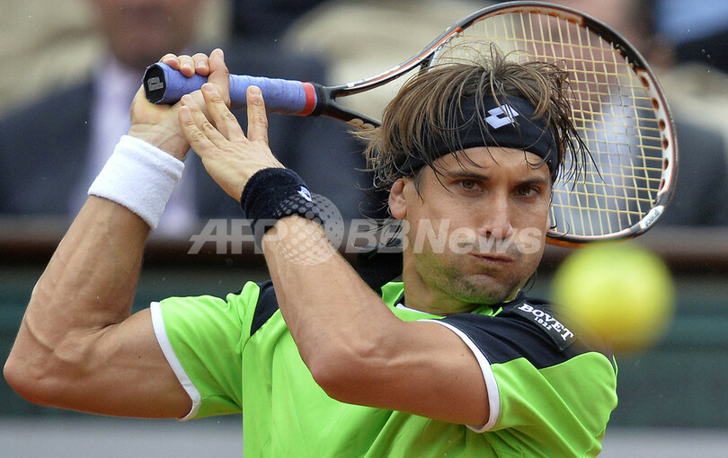 リターンを打つダビド・フェレール(2013年6月9日撮影)。(c)AFP/MIGUEL MEDINA