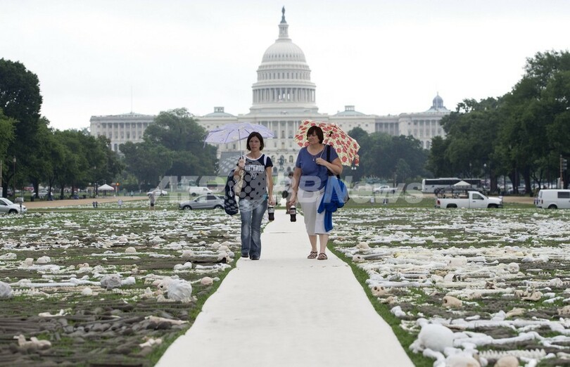 ニュース ライフ 米首都に「100万本の骨」、残虐行為廃止を訴え 2013年6月11日 10:37 発信地:ワシントンD.C./米国 [ 北米 米国 ] このニュースをシェア ‹ › ❮ 11/12 ❯ 世界各地で今なお続くジェノサイド(大量虐殺)や残虐行為への関心を高めるための展示「One Million Bones(100万本の骨)」が、米首都ワシントンD.C.(Washington D.C.)の国立公園ナショナル・モール(National Mall)で8~10日の3日間にわたり開催された。手作りの骨の模型100万本を地面に置き、共同墓地を象徴的に表現したという(2013年6月10日撮影)。(c)AFP/Saul LOEB 画像作成中 ! 【6月11日 AFP】世界各地で今なお続くジェノサイド(大量虐殺)や残虐行為への関心を高めるための展示「One Million Bones(100万本の骨)」が、米首都ワシントンD.C.(Washington D.C.)の国立公園ナショナル・モール(National Mall)で8~10日の3日間にわたり開催された。手作りの骨の模型100万本を地面に置き、共同墓地を象徴的に表現したという。(c)AFP ライフ 一覧へ> メディア・報道関係・法人の方向け 写真・動画 購入のお問合せ>