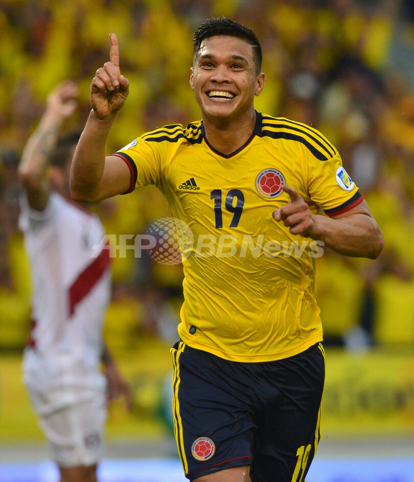 前半終了間際にはテオフィロ・グティエレス(Teofilo Gutierrez)が追加点を挙げ、ペルーに2-0で勝利したコロンビアは本大会出場へ向けて前進した。(c)AFP