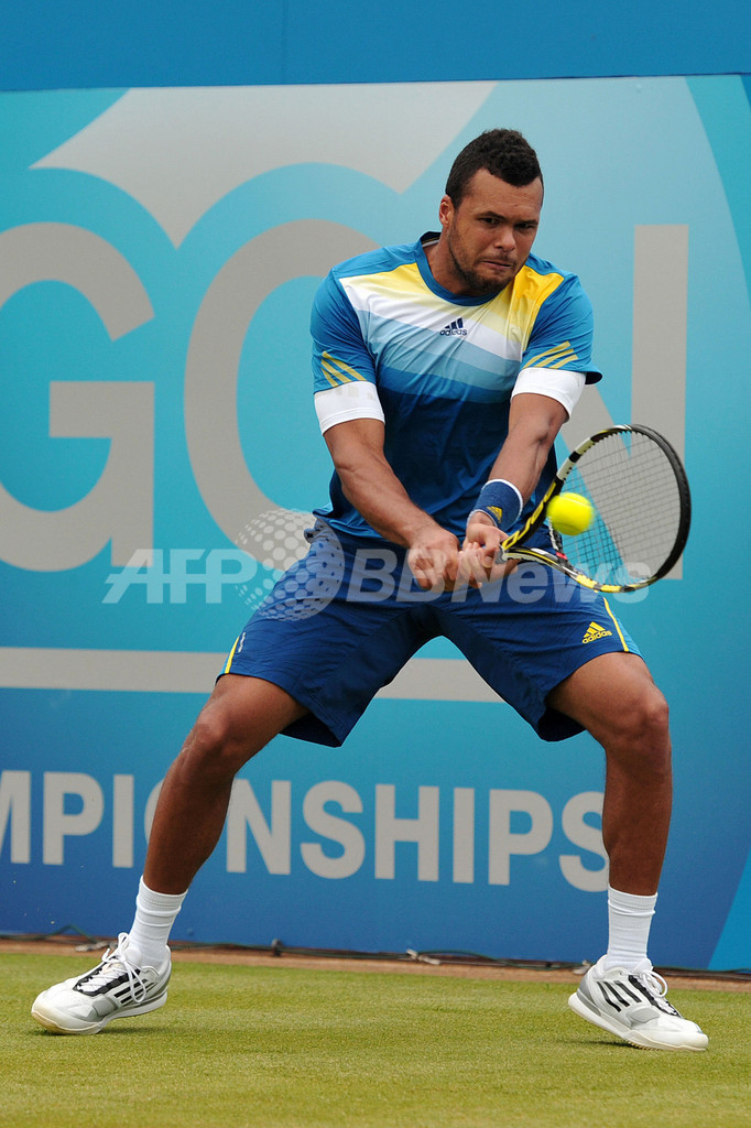 リターンを打つジョーウィルフリード・ツォンガ(2013年6月13日撮影)。(c)AFP/CARL COURT