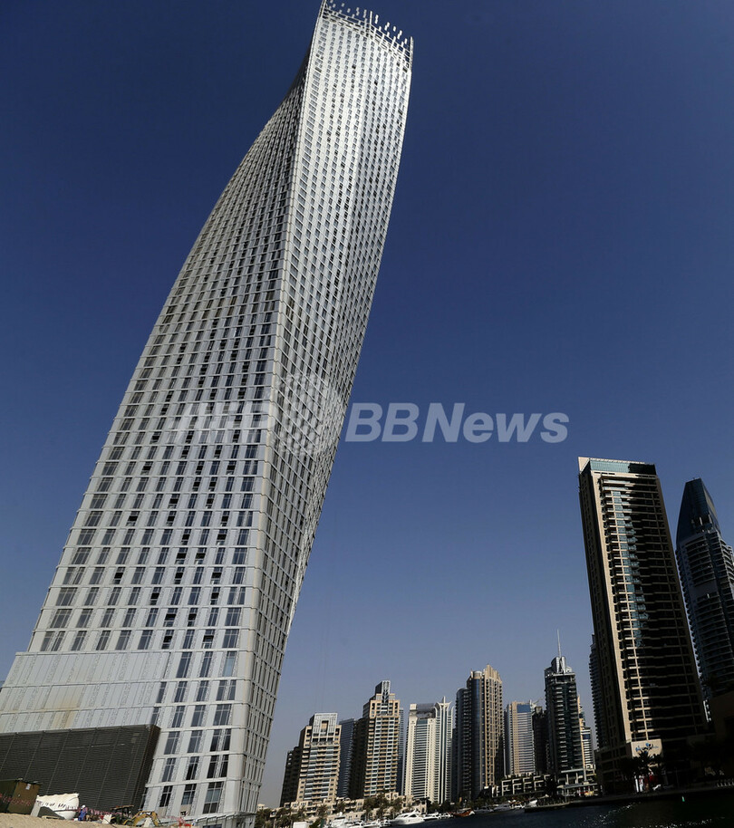 運河を臨むドバイマリーナ(Dubai Marina)に総工費2億7200万ドル(約260億円)をかけて建設されたカヤンタワーは超高層マンションで、開発業者によると住居の8割が売却済み。2006年に着工したが、技術面での問題や世界金融危機の余波による景気低迷の影響で完成が遅れていた。
