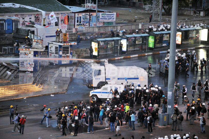 【6月16日 AFP】トルコ警察は15日、レジェプ・タイップ・エルドアン(Recep Tayyip Erdogan)首相が立ち退きを命じる最後通告を発した後もイスタンブール(Istanbul)市内の公園の占拠を続けたデモ隊の強制排除に踏み切った。