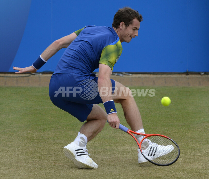 リターンを打つアンディ・マレー(2013年6月16日撮影)。(c)AFP/ADRIAN DENNIS