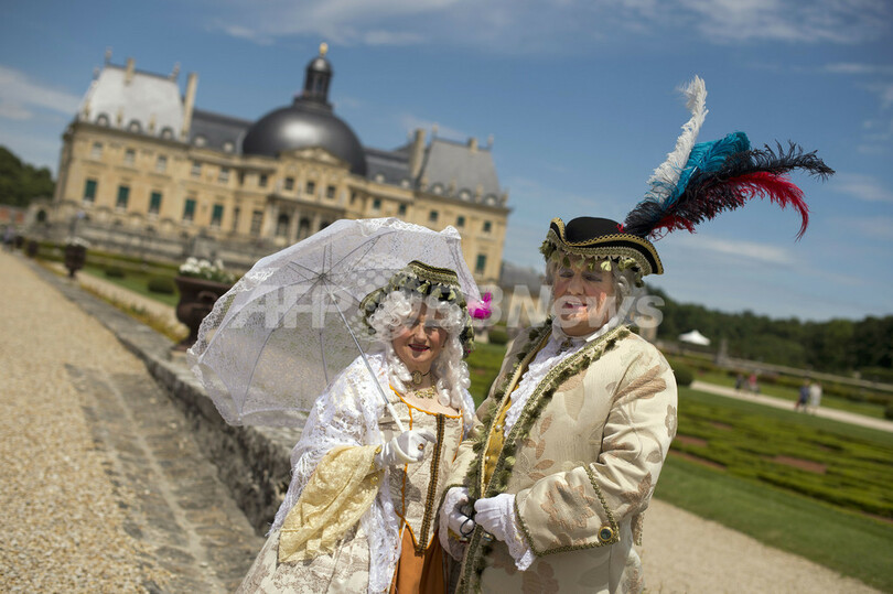【6月18日 AFP】仏メンシ-(Maincy)のヴォー・ル・ヴィコント城 (chateau of Vaux-le-Vicomte)で16日、「偉大なる世紀の日」と題したイベントが開催された。ヴォー・ル・ヴィコント城と、ルイ14世(Louis XIV)の庭師として知られ、今年生誕400年を迎えたアンドレ・ル・ノートル(André Le Nôtre)によってデザインされた庭を舞台に、17世紀の雰囲気を再現することを目的とするイベントでは、当時の衣装を着て優雅に振る舞う人々の姿が見られた。(c)AFP
