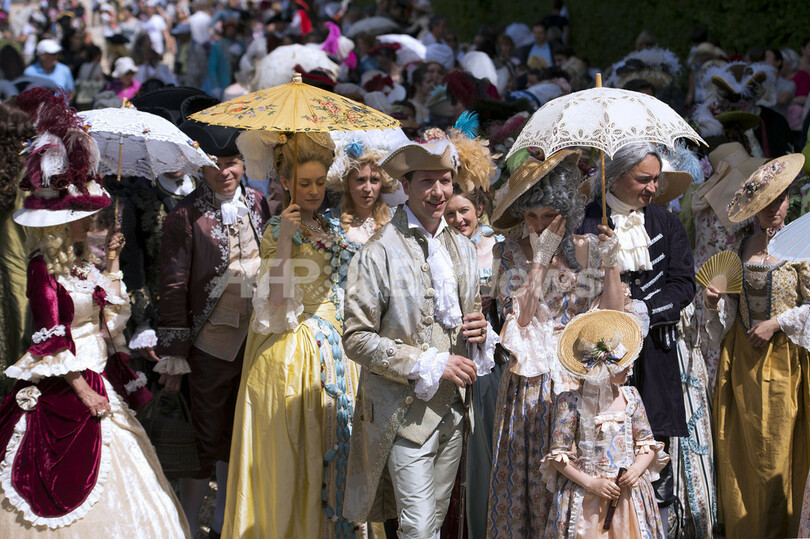 【6月18日 AFP】仏メンシ-(Maincy)のヴォー・ル・ヴィコント城 (chateau of Vaux-le-Vicomte)で16日、「偉大なる世紀の日」と題したイベントが開催された。ヴォー・ル・ヴィコント城と、ルイ14世(Louis XIV)の庭師として知られ、今年生誕400年を迎えたアンドレ・ル・ノートル(André Le Nôtre)によってデザインされた庭を舞台に、17世紀の雰囲気を再現することを目的とするイベントでは、当時の衣装を着て優雅に振る舞う人々の姿が見られた。(c)AFP