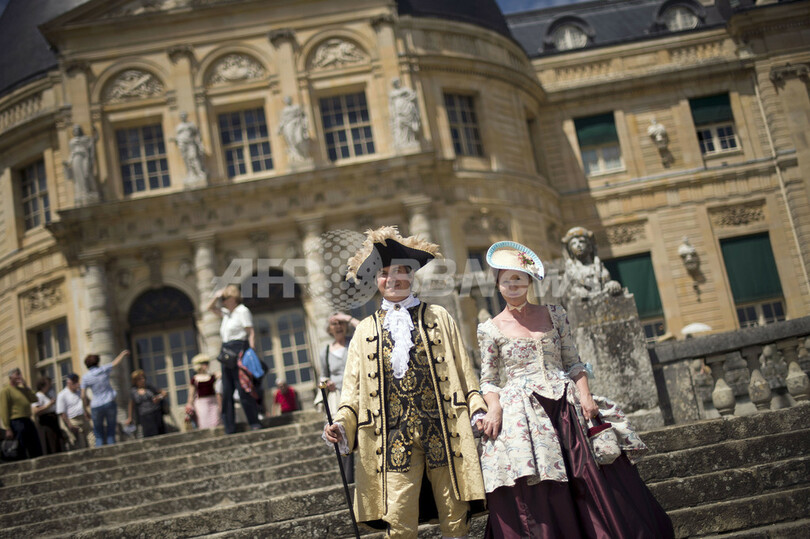 【6月18日 AFP】仏メンシ-(Maincy)のヴォー・ル・ヴィコント城 (chateau of Vaux-le-Vicomte)で16日、「偉大なる世紀の日」と題したイベントが開催された。ヴォー・ル・ヴィコント城と、ルイ14世(Louis XIV)の庭師として知られ、今年生誕400年を迎えたアンドレ・ル・ノートル(André Le Nôtre)によってデザインされた庭を舞台に、17世紀の雰囲気を再現することを目的とするイベントでは、当時の衣装を着て優雅に振る舞う人々の姿が見られた。(c)AFP