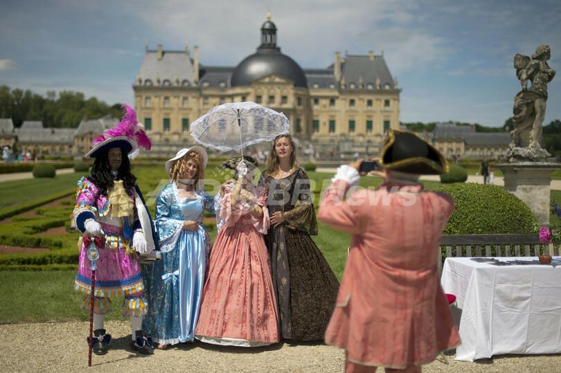 【6月18日 AFP】仏メンシ-(Maincy)のヴォー・ル・ヴィコント城 (chateau of Vaux-le-Vicomte)で16日、「偉大なる世紀の日」と題したイベントが開催された。ヴォー・ル・ヴィコント城と、ルイ14世(Louis XIV)の庭師として知られ、今年生誕400年を迎えたアンドレ・ル・ノートル(André Le Nôtre)によってデザインされた庭を舞台に、17世紀の雰囲気を再現することを目的とするイベントでは、当時の衣装を着て優雅に振る舞う人々の姿が見られた。(c)AFP