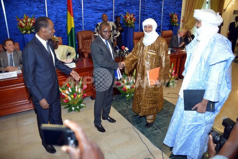 仲介者として中心的な役割を果たしてきた隣国ブルキナファソのブレーズ・コンパオレ(Blaise Compaore)大統領が立ち会う中、マリ政府のムサ・サンコ・クリバリ(Moussa Sinko Coulibaly)国土・地方分権相と2つのトゥアレグ人勢力の代表者が、ブルキナファソの首都ワガドゥグ(Ouagadougou)で同協定に署名した。