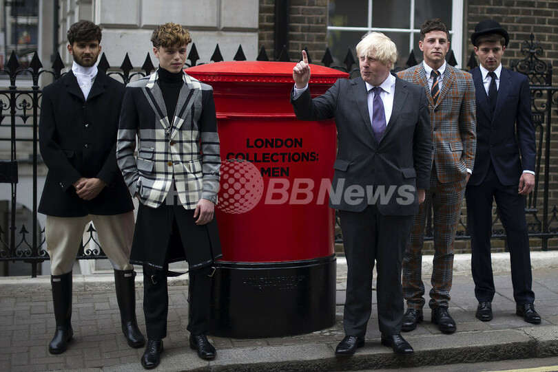 【6月20日 AFP】14年春夏ロンドンコレクション:メン最終日の18日、市内のサヴィル・ロウ(Savile Row)でメンズウェアの歴史的スポットを紹介するマップ「London: Home of Menswear heritage map」のローンチイベントが行なわれ、ロンドンのボリス・ジョンソン(Boris Johnson)市長がモデルらと一緒に登場した。(c)AFP