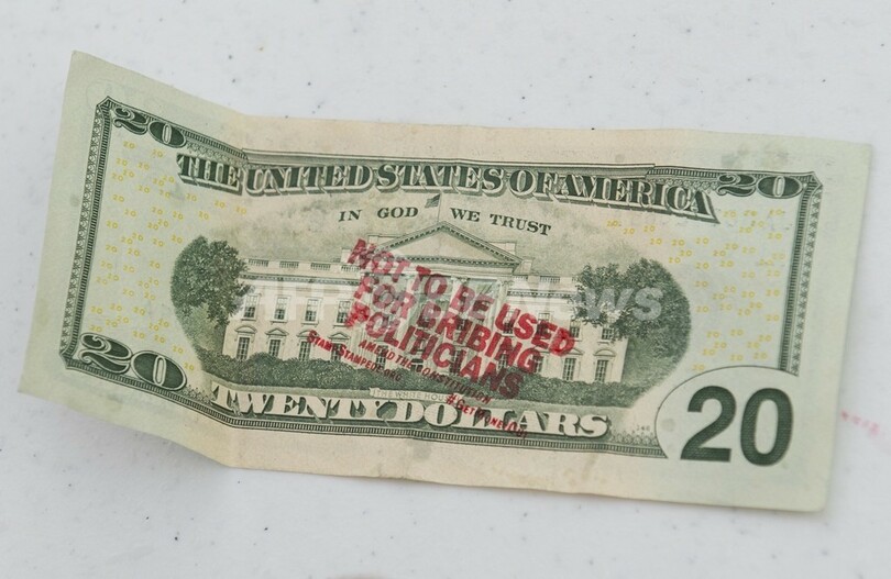 「金まみれの政治にノー」、紙幣にスタンプでメッセージ 米国