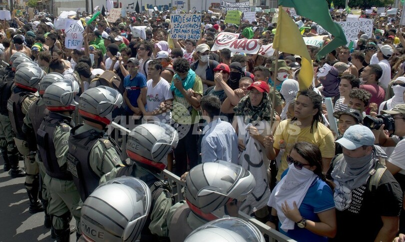 【6月20日 AFP】ブラジル北東部セアラ(Ceara)州フォルタレーザ(Fortaleza)で19日、2014年に開催予定のW杯ブラジル大会(2014 World Cup)への大規模な資金投入に抗議するデモ隊と警官隊が衝突し、少なくとも2人が負傷した。