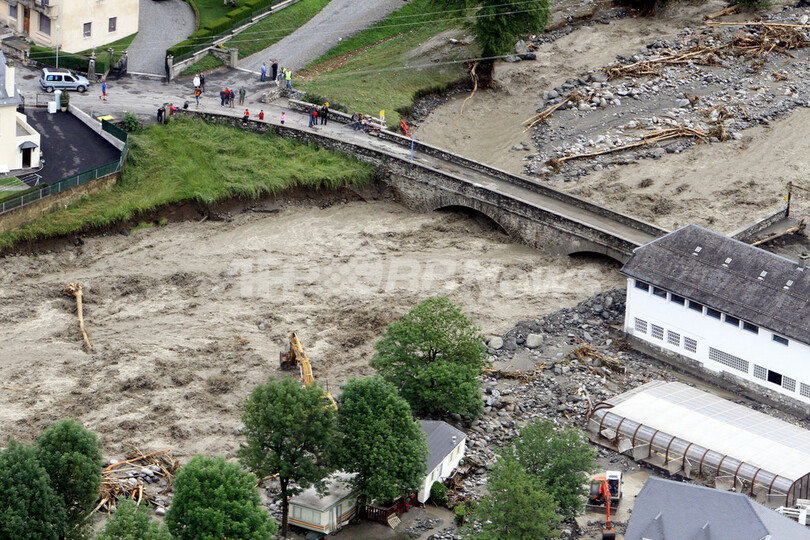 写真は仏南部リュス・サン・ソバール(Luz-Saint-Sauveur)の氾濫した河川(2013年6月19日撮影)。(c)AFP/LAURENT DARD