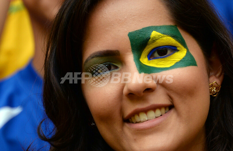 グループA、ブラジル対日本。試合開始を待つブラジルのサポーター(2013年6月15日撮影)。(c)AFP/VANDERLEI ALMEIDA