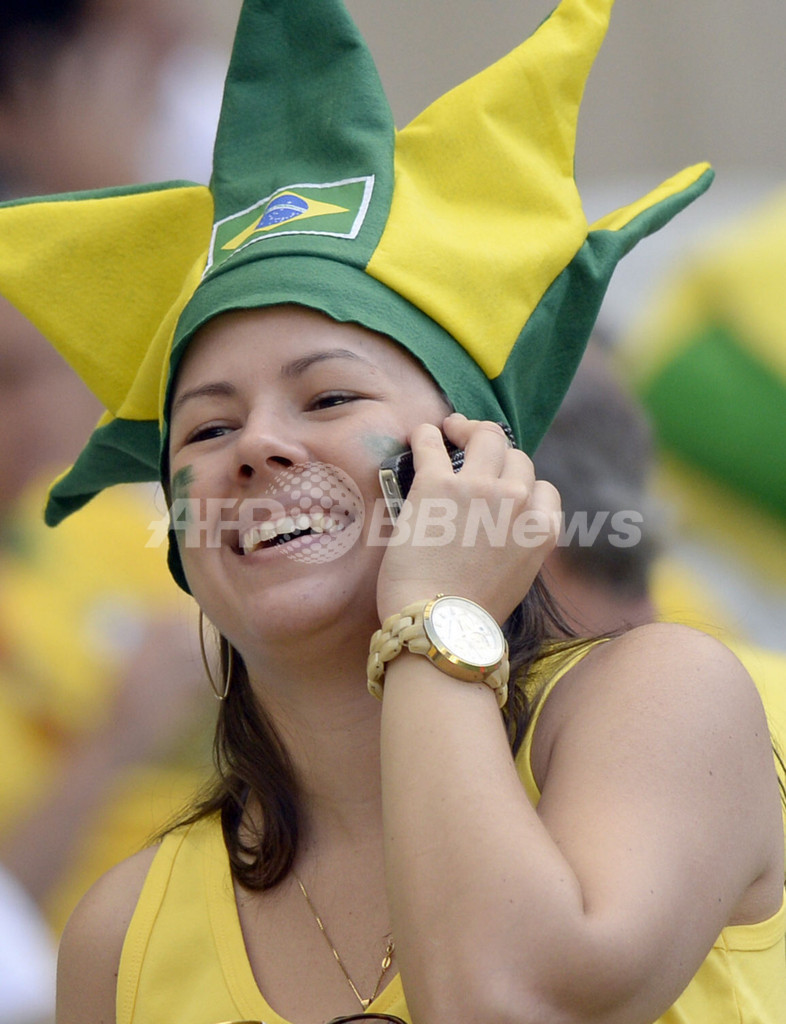 準決勝、ブラジル対ウルグアイ。試合開始を待つブラジルのサポーター(2013年6月26日撮影)。(c)AFP/DANIEL GARCIA