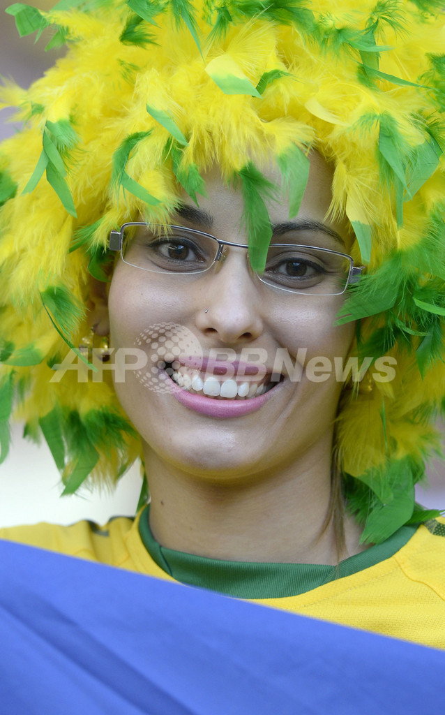 準決勝、ブラジル対ウルグアイ。試合開始を待つブラジルのサポーター(2013年6月26日撮影)。(c)AFP/DANIEL GARCIA