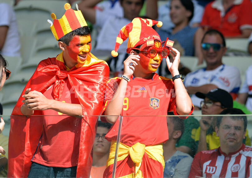 準決勝、スペイン対イタリア。試合開始を待つスペインのサポーター(2013年6月27日撮影)。(c)AFP/VINCENZO PINTO