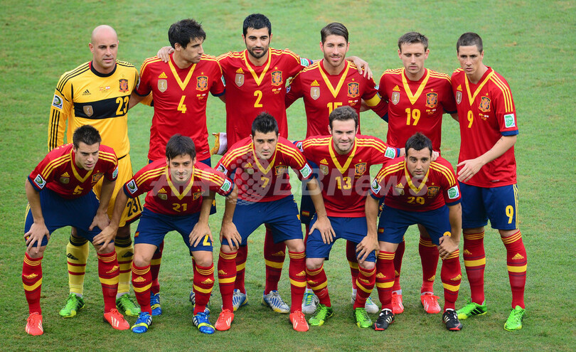試合前の写真撮影に臨むスペインの選手(2013年6月20日撮影)。(c)AFP/CHRISTOPHE SIMON