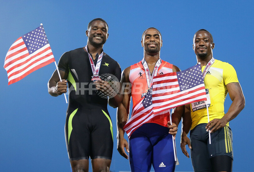 この上位3選手は、8月10日から18日に開催される世界陸上で、五輪2大会で通算6個の金メダルを獲得しているボルトを始めとするジャマイカ短距離陣に挑戦する中心選手となる。(c)AFP/Rebecca Bryan