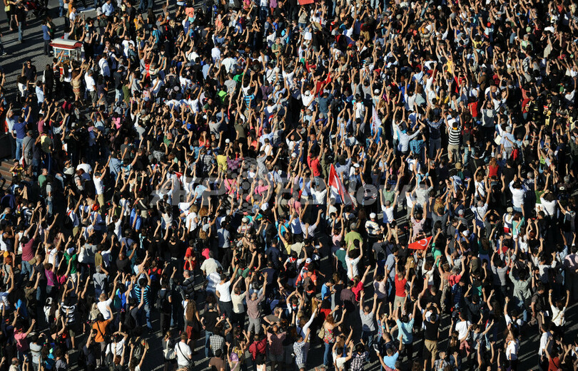 デモ隊が市内のタクシム広場(Taksim Square)で、レジェプ・タイップ・エルドアン(Recep Tayyip Erdogan)首相の退陣を求めてシュプレヒコールを上げていたところ、数百人の警官隊が放水車とともに突入し、デモ隊を解散させた。