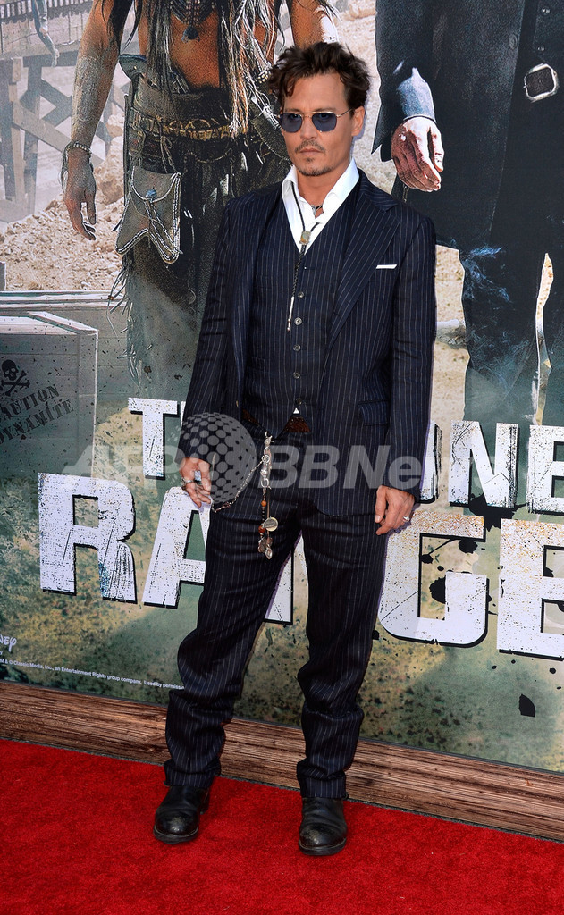 ジョニー・デップ(Johnny Depp)の最新作『ローン・レンジャー(The Lone Ranger)』のワールドプレミアが22日、米カリフォルニア(California)州アナハイム(Anaheim)で開催され、出演者とスタッフらが出席した。日本公開は8月2日。写真は、レッドカーペットに登場したデップ(2013年6月22日撮影)。(c)AFP/Getty Images/Frazer Harrison