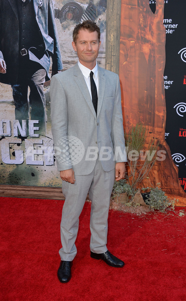 ジョニー・デップ(Johnny Depp)の最新作『ローン・レンジャー(The Lone Ranger)』のワールドプレミアが22日、米カリフォルニア(California)州アナハイム(Anaheim)で開催され、出演者とスタッフらが出席した。日本公開は8月2日。写真は、レッドカーペットに登場した出演者のジェームズ・バッジ・デール(James Badge Dale、2013年6月22日撮影)。(c)AFP/Getty Images/Frazer Harrison