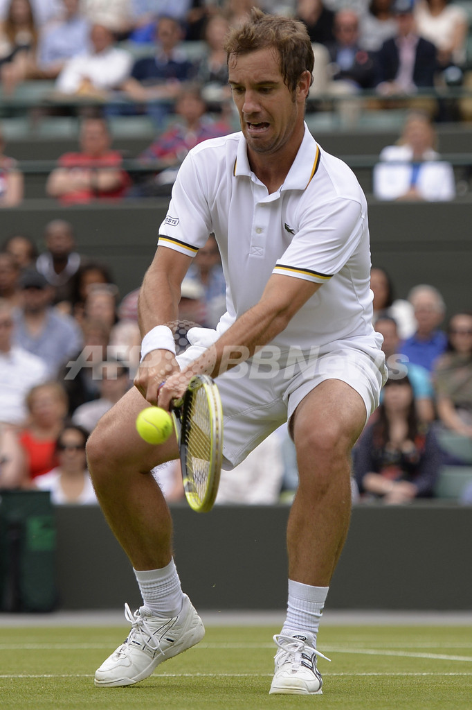 リターンを打つリシャール・ガスケ(2013年6月27日撮影)。(c)AFP/ADRIAN DENNIS