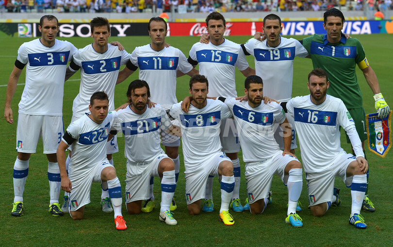 試合前の写真撮影に臨むイタリアの選手(2013年6月27日撮影)。(c)AFP/VINCENZO PINTO