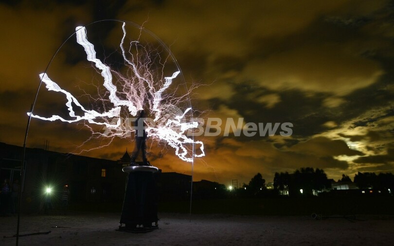 【6月28日 AFP】中国福建(Fujian)省福州(Fuzhou)市郊外の村で24日、地元のバンド「ライトニングファン(Lightningfan)」が、テスラコイルを使い雷を発生させながら演奏するパフォーマンスを行った。