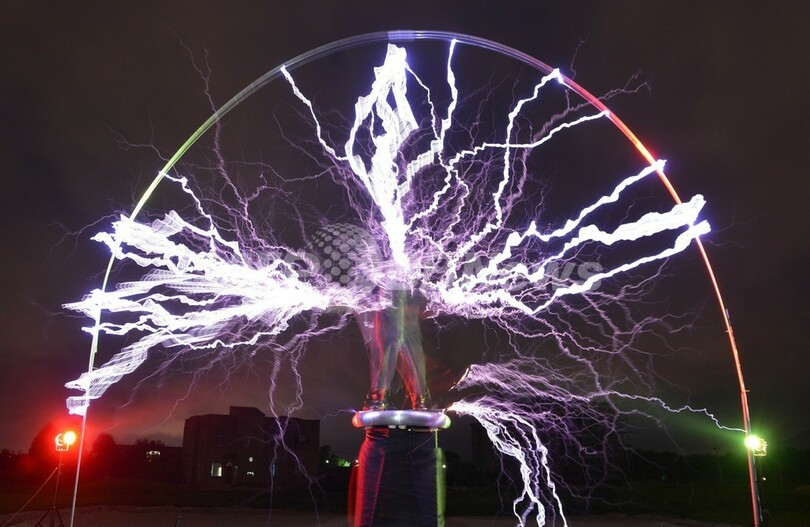 【6月28日 AFP】中国福建(Fujian)省福州(Fuzhou)市郊外の村で24日、地元のバンド「ライトニングファン(Lightningfan)」が、テスラコイルを使い雷を発生させながら演奏するパフォーマンスを行った。