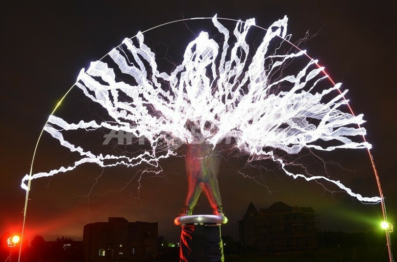 【6月28日 AFP】中国福建(Fujian)省福州(Fuzhou)市郊外の村で24日、地元のバンド「ライトニングファン(Lightningfan)」が、テスラコイルを使い雷を発生させながら演奏するパフォーマンスを行った。