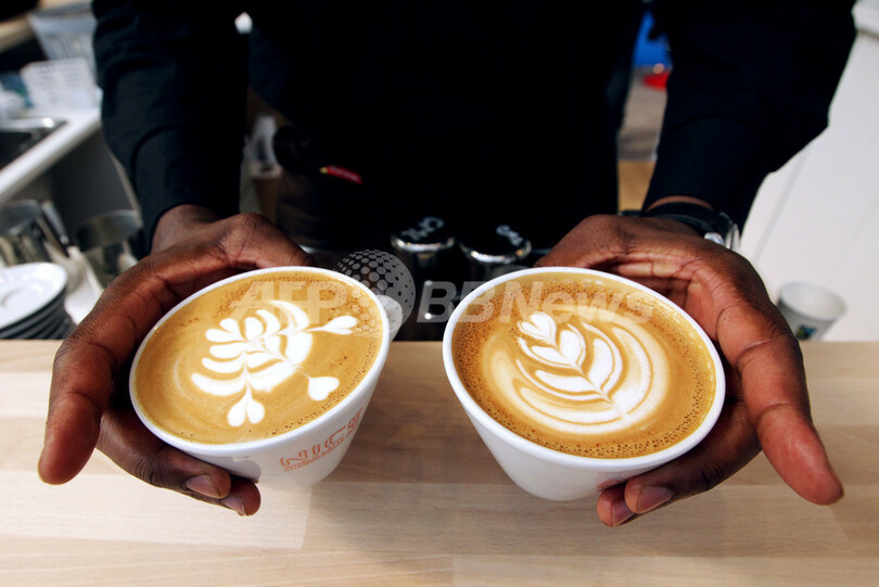 ニュース ライフ こぼれ話 香り豊かなコーヒー見本市、「ラテアート」選手権も 2013年6月28日 15:28 発信地:ニース/フランス [ ヨーロッパ フランス ] このニュースをシェア ‹ › ❮ 9/12 ❯ コーヒーの国際見本市「コーヒーの世界2013(World of Coffee)」が、南仏のニース(Nice)で26日から3日間の日程で開催中だ。27日には「カフェラテアート」選手権や「利き豆」選手権も行われた。写真は、カフェラテアート選手権で優勝したフランス人のルディ・デュプイ(Rudy Dupuy)さんの作品(2013年6月27日撮影)。(c)AFP/JEAN CHRISTOPHE MAGNENET 画像作成中 ! 【6月28日 AFP】コーヒーの国際見本市「コーヒーの世界2013(World of Coffee)」が、南仏のニース(Nice)で26日から3日間の日程で開催されている。(c)AFP ライフ 一覧へ> メディア・報道関係・法人の方向け 写真・動画 購入のお問合せ>