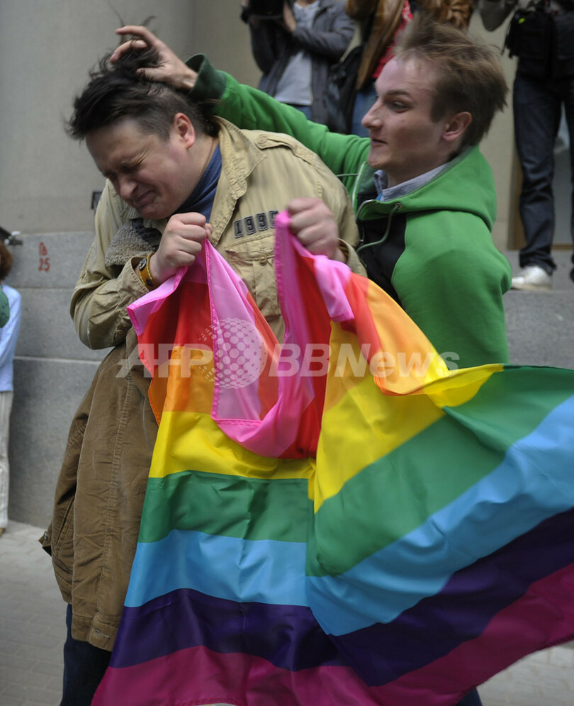 露独立系調査機関レバダ・センター(Levada Center)が4月に行った調査では、ロシア人の39%が同性愛者は異性愛者と同じ権利を付与されるべきと答えたのに対し、47%が反対の立場を示した。(c)AFP/Maria ANTONOVA