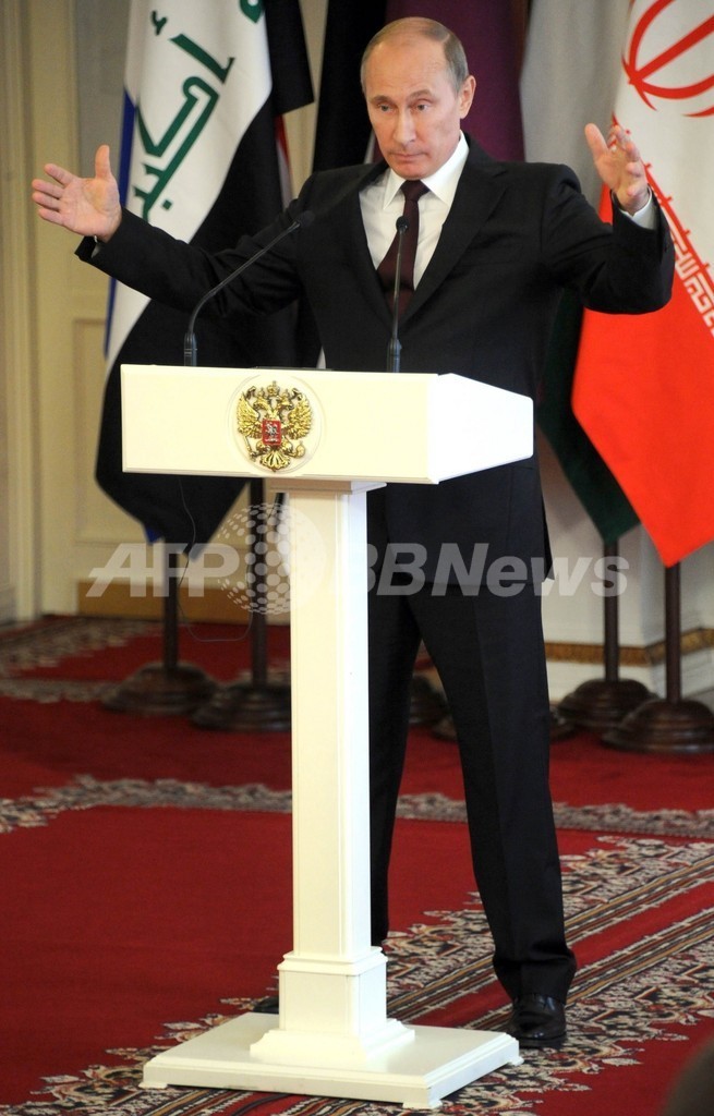一方、プーチン大統領は1日の記者会見で、スノーデン元職員の今後について報道陣から質問が相次ぐと、「ロシアは誰かをどこかへ引き渡すようなことはしておらず、そうする意図もない」と述べ、「もし(スノーデン元職員が)ここにとどまりたいのなら、1つ条件がある。われわれの米国のパートナーに損害を与えることを企図した活動をやめるべきだ。私がこんなことを言うと奇妙に聞こえるかもしれないが」と語った。(c)AFP/Maria ANTONOVA