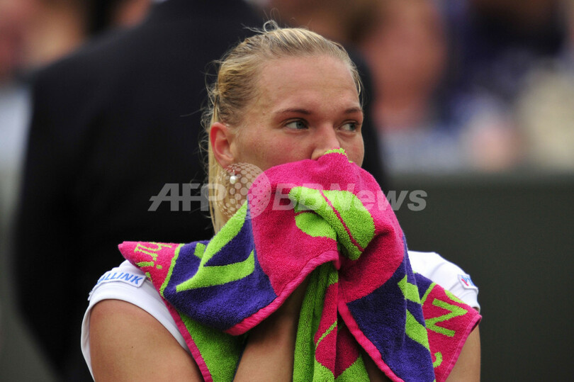 ゲームの合間にタオルで顔を拭うカイア・カネピ(2013年7月2日撮影)。(c)AFP/GLYN KIRK