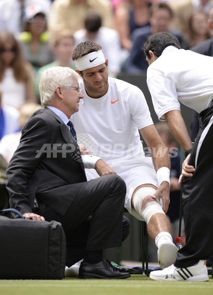 デルポトロは第1セット早々に転倒し、すでに痛めている左膝を不自然な方向に曲げて涙を流した。スロベニアのグレガ・ゼミヤ(Grega Zemlja)との3回戦で負傷していたデルポトロは、転倒した際の痛みがひどく、棄権寸前だったと明かした。