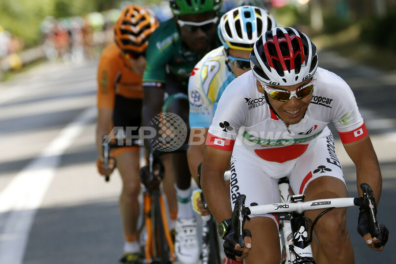 レースに臨むチーム・ユーロップカー(Team Europcar)の新城幸也(Yukiya Arashiro、手前、2013年7月3日撮影)。(c)AFP/JOEL SAGET