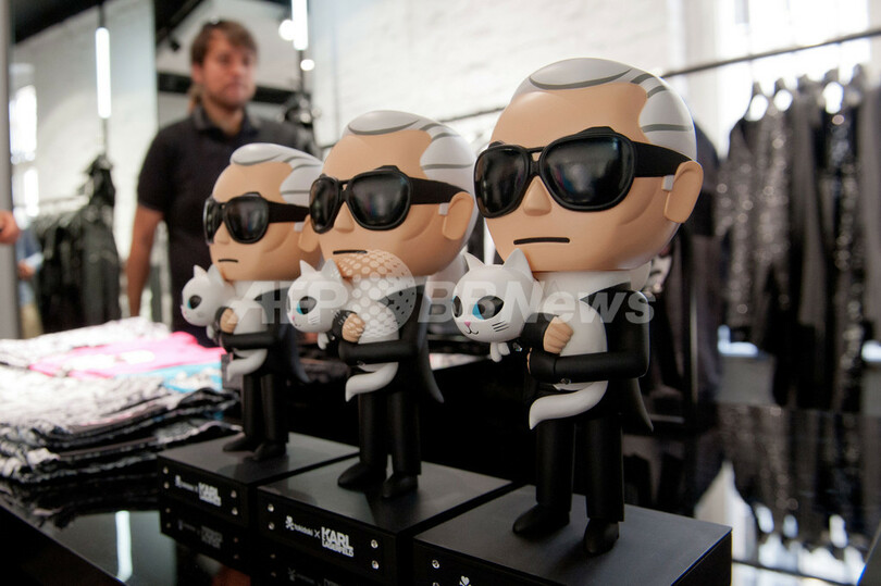 ストアでは、コレクションラインのほかにカールをキャラクター化したフィギュアやキーホルダー、プリントTシャツなどを発売。オープニングには、ドイツ人モデルのシルヴィ・ファン・デル・ファールト(Sylvie van der Vaart)が来場し、フィギュアを抱えて写真撮影に応じた。(c)AFP