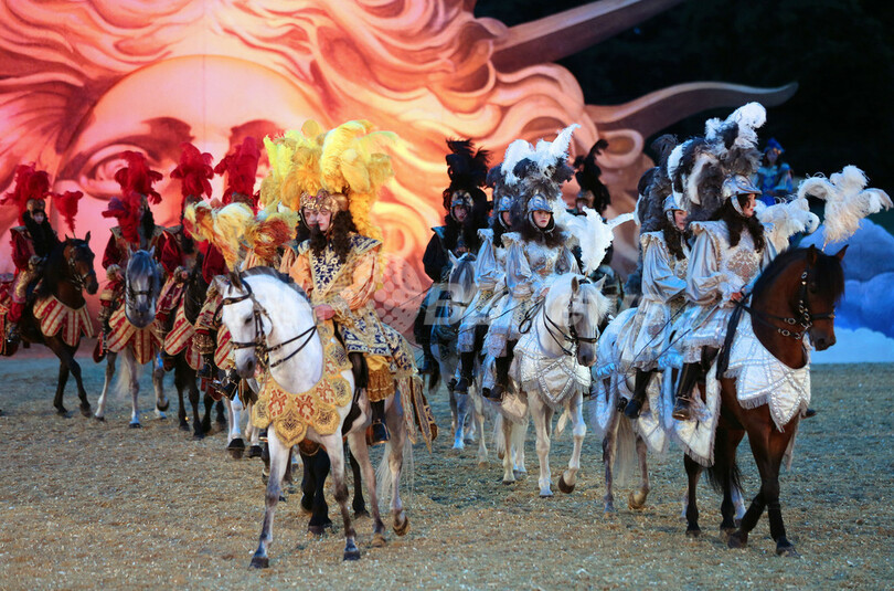 ニュース ライフ ベルサイユ宮殿で「太陽の騎士団」イベント開催 2013年7月4日 11:55 発信地:パリ/フランス [ ヨーロッパ フランス ] このニュースをシェア ‹ › ❮ 8/10 ❯ フランス・パリ(Paris)のベルサイユ宮殿(Versailles)で2日、神話を基にした舞台「太陽の騎士団」の公演に向けたイベントが開催された。ジャン・フィリップ・ドラヴォー(Jean-Philippe Delavault)氏が手がけるこの舞台には、ベルギーとポルトガルの馬術学校から20人の騎手と数人のスタントマンも参加する。公演は4日から6日まで(2013年7月2日撮影)。(c)AFP/THOMAS SAMSON 画像作成中 ! 【7月4日 AFP】フランス・パリ(Paris)のベルサイユ宮殿(Versailles)で2日、神話を基にした舞台「太陽の騎士団」の公演に向けたイベントが開催された。ジャン・フィリップ・ドラヴォー(Jean-Philippe Delavault)氏が手がけるこの舞台には、ベルギーとポルトガルの馬術学校から20人の騎手と数人のスタントマンも参加する。公演は4日から6日まで。(c)AFP ライフ 一覧へ> メディア・報道関係・法人の方向け 写真・動画 購入のお問合せ>