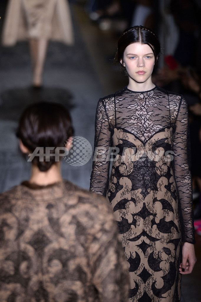 3日には、マリア・グラツィア・キウリ(Maria Grazia Chiuri)とピエールパオロ・ピッチョーリ(Pierpaolo Piccioli)が手がける「ヴァレンティノ(Valentino)」が新作を発表した。(c)AFP