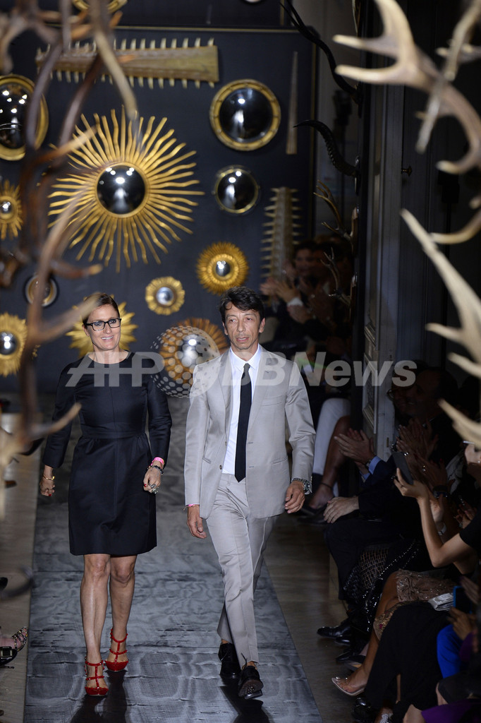 3日には、マリア・グラツィア・キウリ(Maria Grazia Chiuri)とピエールパオロ・ピッチョーリ(Pierpaolo Piccioli)が手がける「ヴァレンティノ(Valentino)」が新作を発表した。(c)AFP