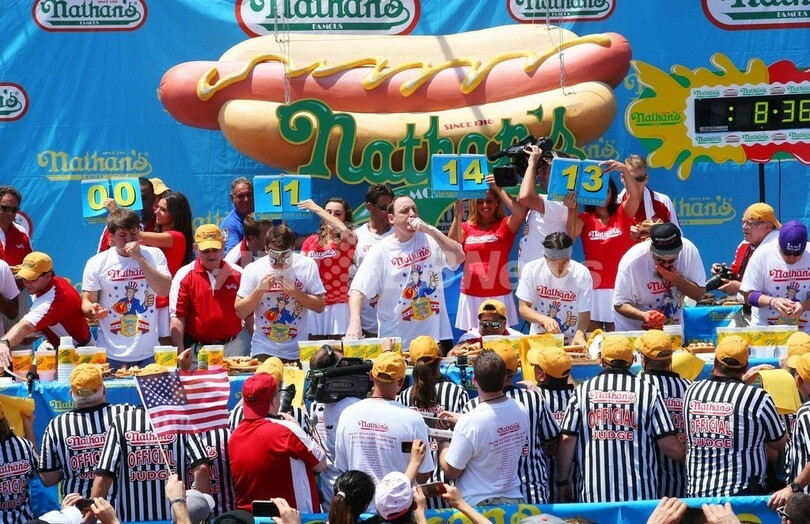NYでホットドッグ早食い大会、優勝者自己ベスト更新