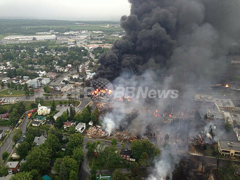 【7月7日 AFP】(一部更新、写真追加)カナダのケベック州(Quebec)ラックメガンティック(Lac-Megantic)で6日未明、石油を輸送中だった貨物列車が脱線し、爆発炎上した。この影響で周辺の建物数十棟が破壊され、少なくとも80人が行方不明になっている。
