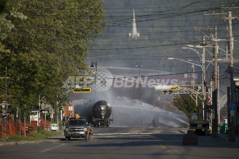 【7月7日 AFP】(一部更新、写真追加)カナダのケベック州(Quebec)ラックメガンティック(Lac-Megantic)で6日未明、石油を輸送中だった貨物列車が脱線し、爆発炎上した。この影響で周辺の建物数十棟が破壊され、少なくとも80人が行方不明になっている。