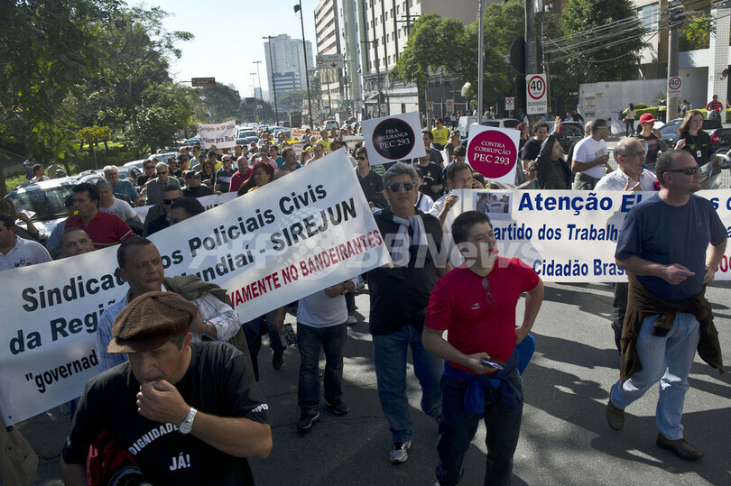 ニュース ライフ 待遇改善を求めて警察官たちがデモ、ブラジル・サンパウロ 2013年7月7日 16:45 発信地:サンパウロ/ブラジル [ 中南米 ブラジル ] このニュースをシェア ‹ › ❮ 3/7 ❯ ブラジル・サンパウロ(Sao Paulo)で4日、刑事事件の捜査などにあたる文民警察官らが、労働条件の改善と給料のアップを求めてデモを行った(2013年7月4日撮影)。(c)AFP/NELSON ALMEIDA 画像作成中 ! 【7月7日 AFP】ブラジル・サンパウロ(Sao Paulo)で4日、刑事事件の捜査などにあたる文民警察官らが、労働条件の改善と給料のアップを求めてデモを行った。(c)AFP ライフ 一覧へ> メディア・報道関係・法人の方向け 写真・動画 購入のお問合せ>