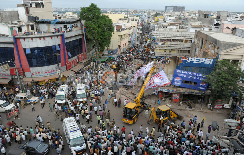 また別の警察関係者によると、セクンデラバードの交通量の多い通りにあるこのホテルでは、事故発生当時25人ほどが勤務中で、まず厨房の壁が崩れ、それが引き金になってより大規模な倒壊が起き、従業員やその他の人々が生き埋めになったという。また、「近所で働いている人々によると、この建物は非常に古く、壁には亀裂が走っていた」ことも明らかにした。